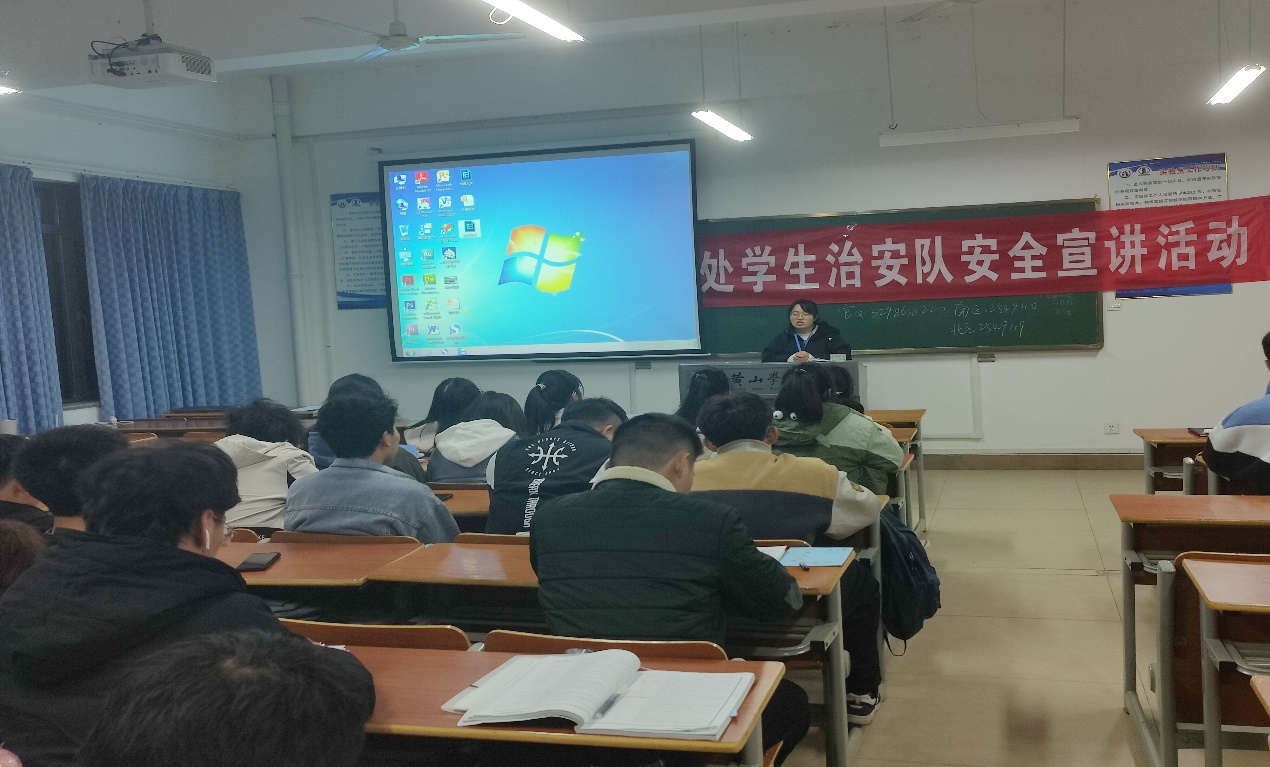 为了进一步增强广大师生的安全文明意识,教育学生关爱生命、拒绝违章,严防道路事故,打造平安校园。2021年11月23日,21智能专业于文津楼4410教室举办保卫处“学生治安队”安全宣讲活动。