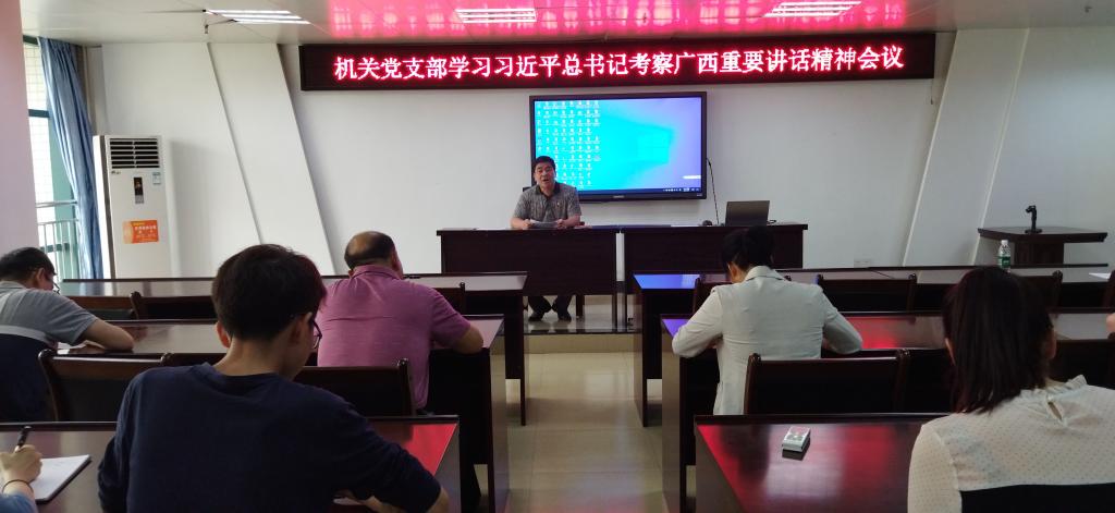 5月7日,机关党支部举行集中学习会议,学习习近平总书记4月考察广西的重要讲话和指示精神。党支部副书记李伟明主持会议并带领学习。