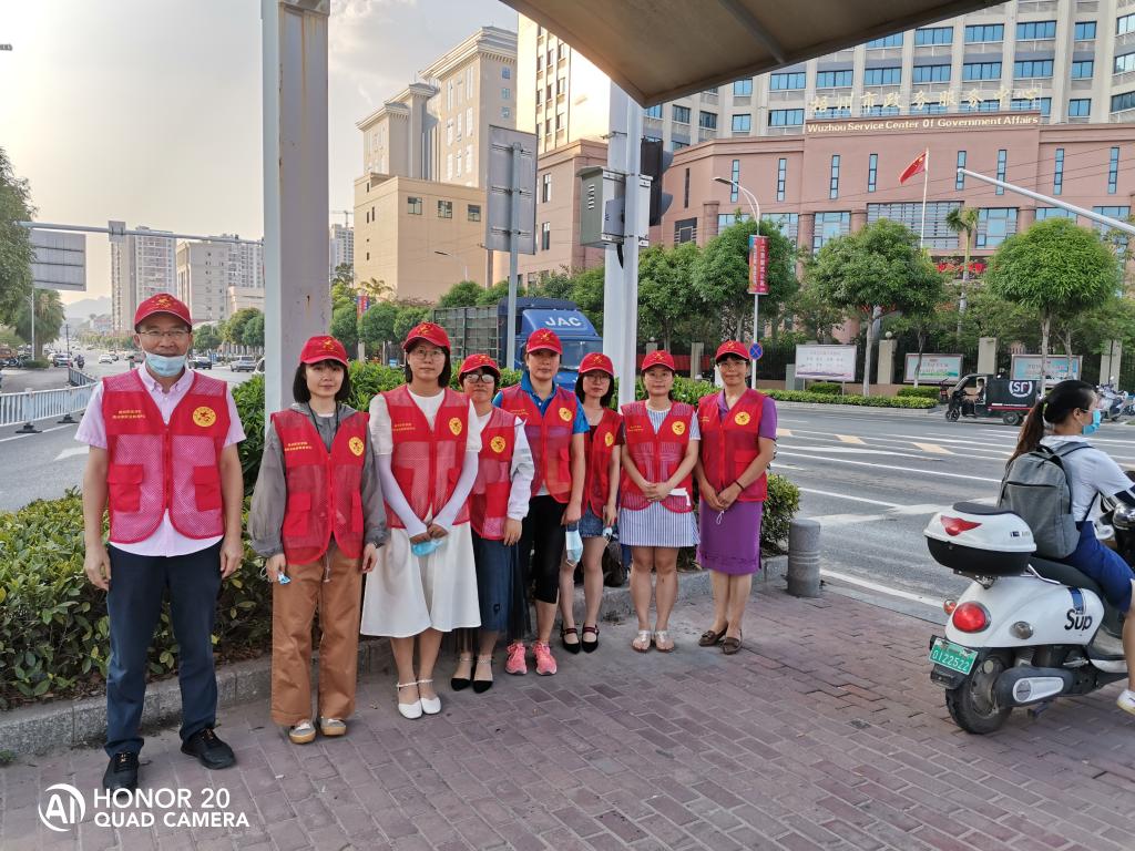 为了贯彻落实党史学习教育“办实事”的要求,6月6日至8日,机关党支部组织党员和群众走上社区街头,开展文明交通劝导志愿服务活动。大家8人一组,顶着烈日,冒着尘灰,配合交通指示灯,对欲闯红灯的行人进行劝导。