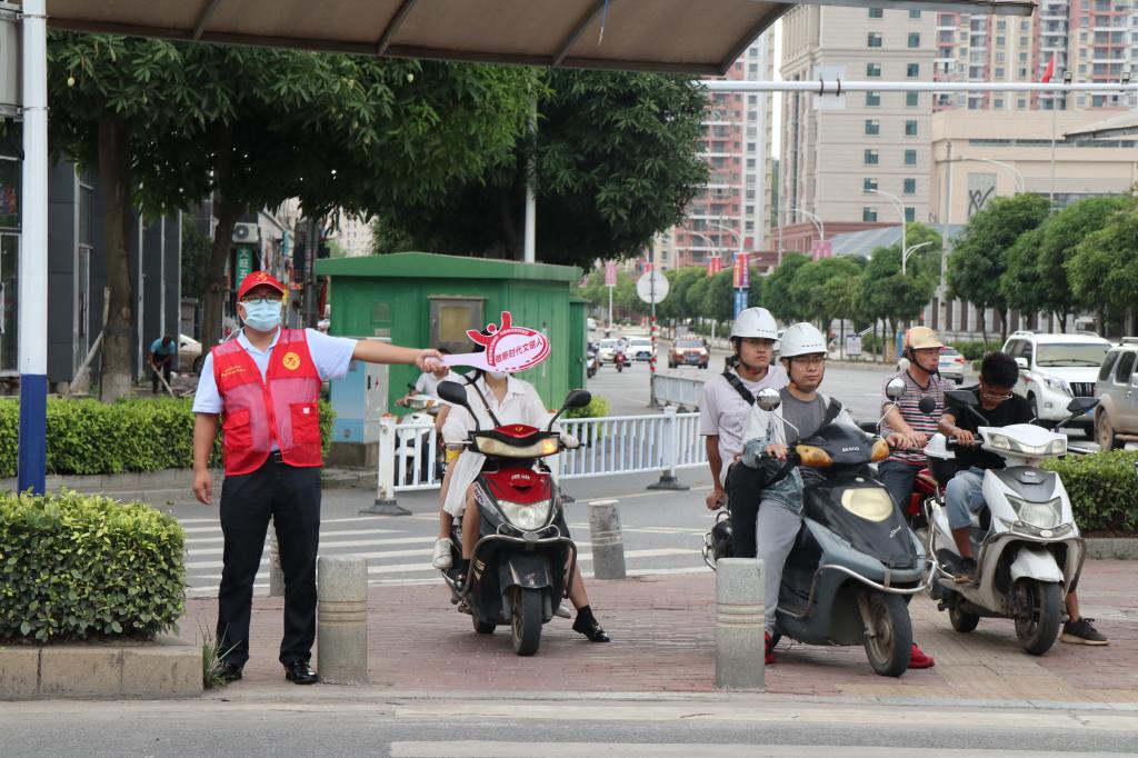 “同志,请遵守交通规则。”6月17日,支部党员、学院党委书记时伟身穿红色志愿者背心,站在政务中心大厦对开十字路口,对不守交通规则的行人进行耐心劝导。