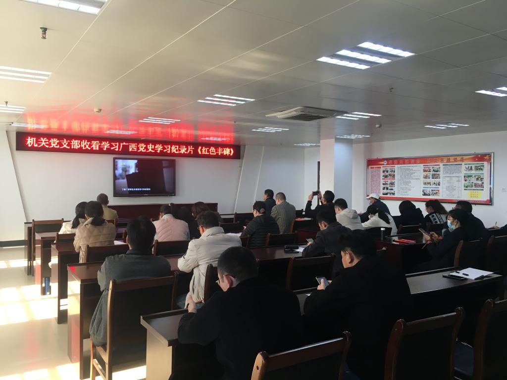 11月26日,党员活动室内,反映中共广西党史的纪录片《红色丰碑》正在热播。随着一个个珍贵的历史画面生动地展示出来,党员们被革命先烈们对党忠诚、不怕牺牲的精神深深感染。