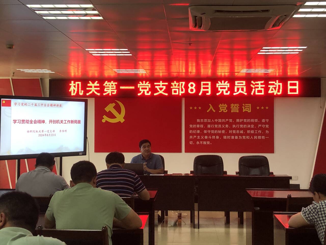 8月23日是党员活动日,党支部举行学习党的二十届三中全会精神专题党课。党支部书记李伟明以《学习全会精神 开创机关工作新局面》为题主讲党课。
