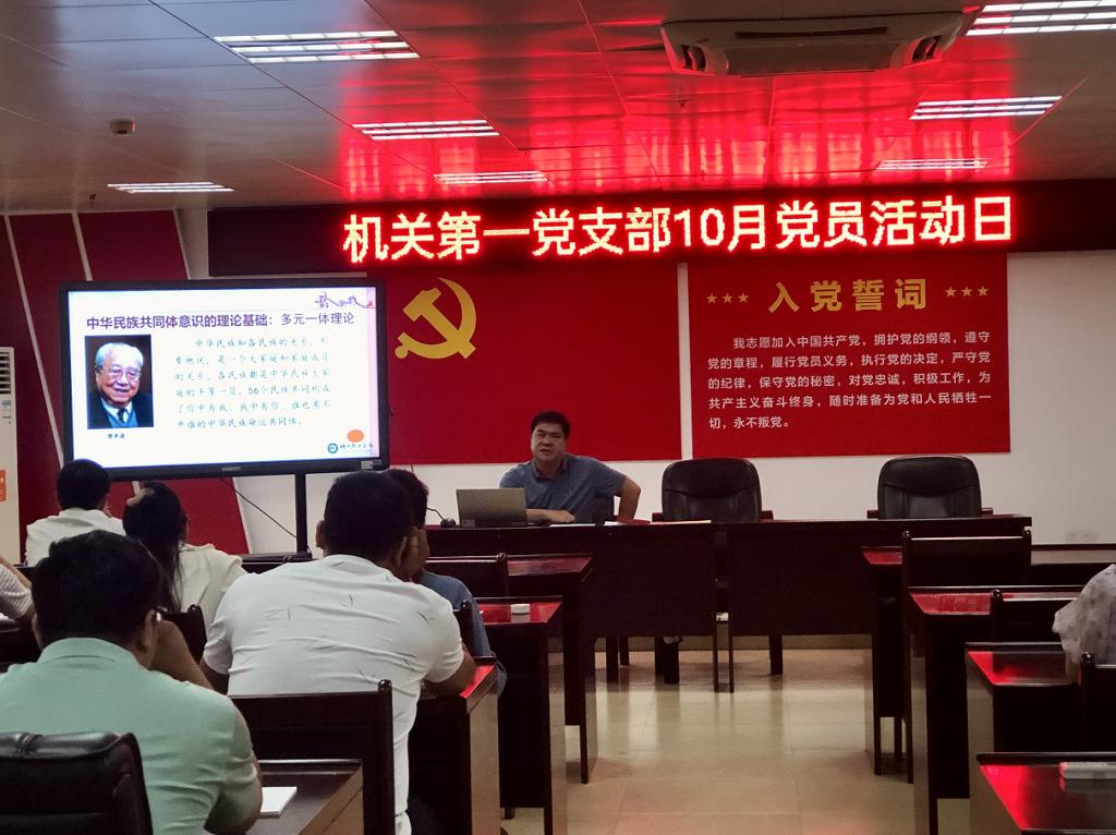 10月18日,党支部举行专题学习会,李伟明书记为党员上《铸牢中华民族共同体意识 自觉维护民族的团结和谐》的党课。