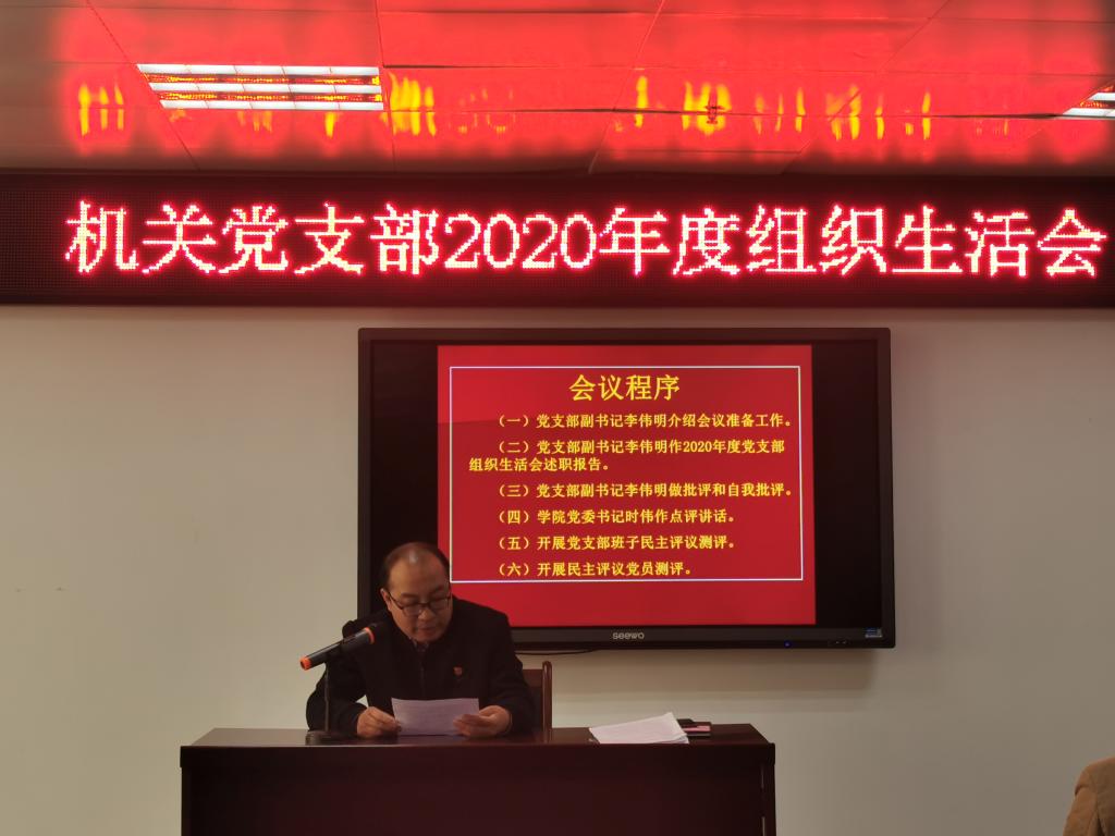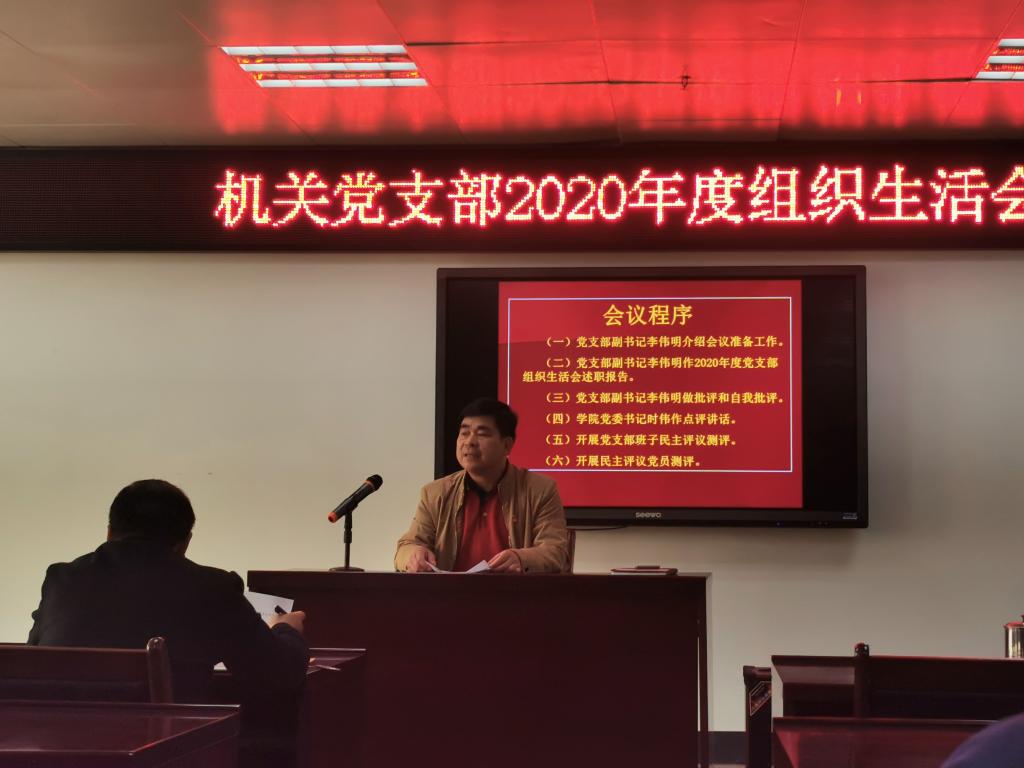 3月12日下午,机关党支部召开2020年度组织生活会。党支部副书记李伟明主持会议,学院党委书记时伟以双重身份参加会议并做点评讲话。