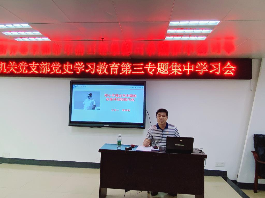当天下午,机关党支部开展党史学习教育第三专题学习,李伟明以《邓小平理论与中国的改革开放和现代化》为题主讲党课。