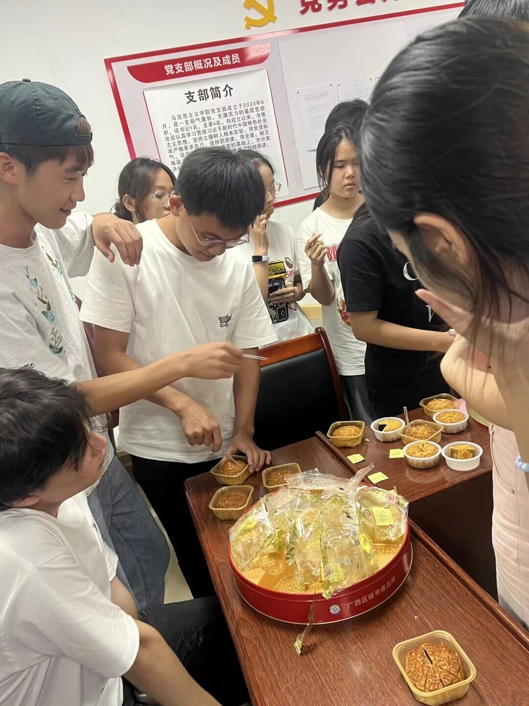 红色文化知识竞答环节气氛热烈,同学们踊跃应答,充分展现出扎实的红色文化知识素养。活动尾声,师生共同品尝象征团圆的月饼,现场气氛融洽和谐,欢声笑语间满是传统节日的温馨暖意。