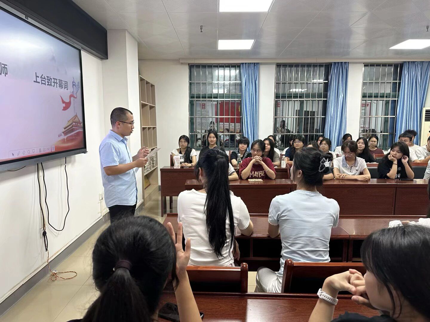 活动由新语社指导教师陈丽冰主持并致开幕词,党员教师代表覃贤发言,勉励新成员在社团实践中锻炼成长,积极传播马克思主义真理,讲好新时代青年话语。