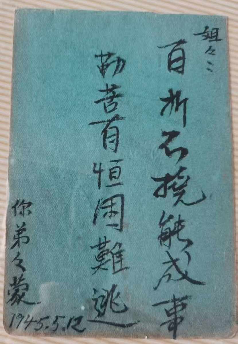2023年他姐姐王洒去世,家人在整理遗物时,才发现了当年王蒙为姐姐写在一个小本子上的这两句话。