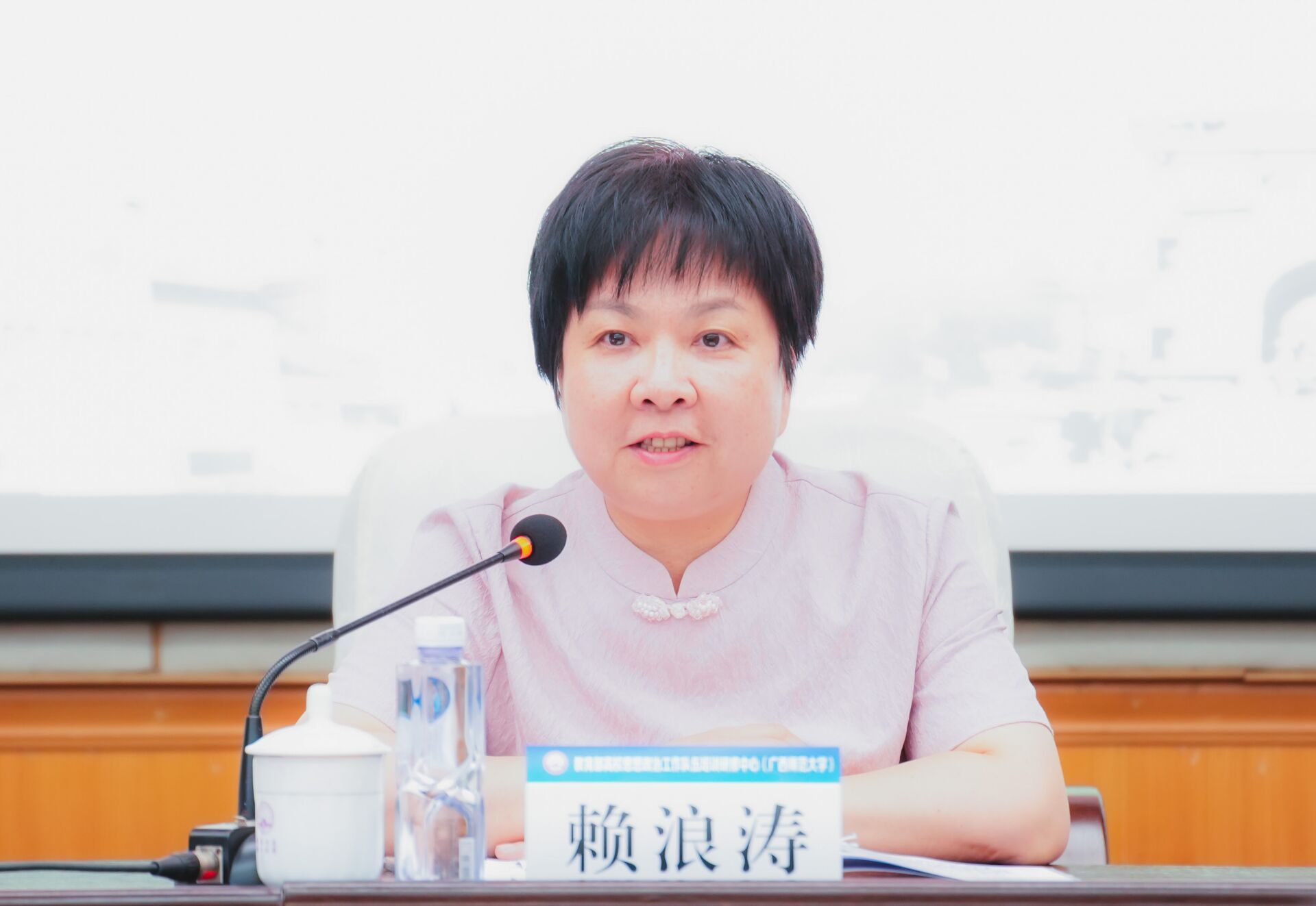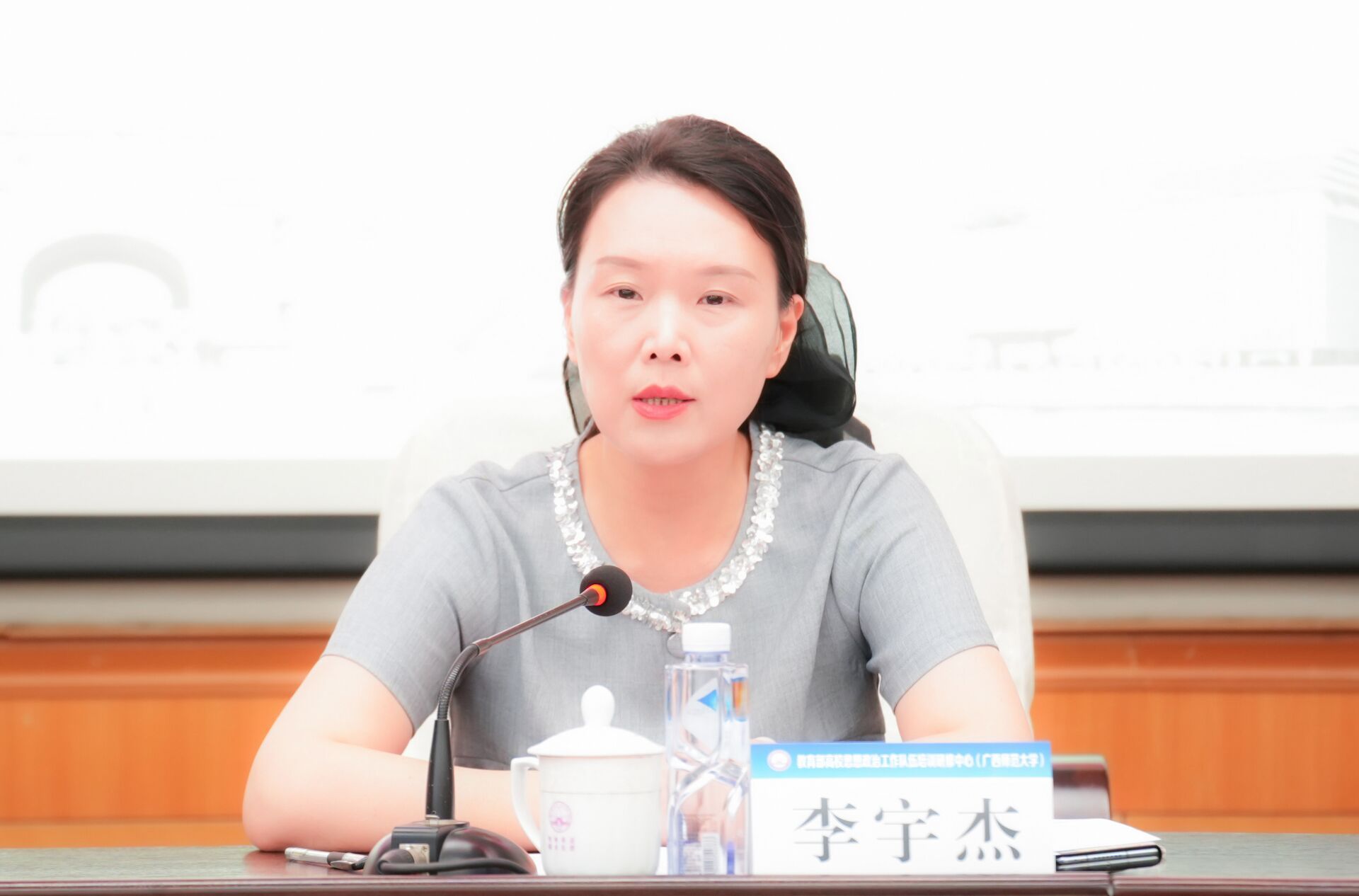 开班仪式上,广西师范大学学生工作部(处)部(处)长李宇杰致欢迎辞,同时她期望各位参训教师珍惜这次难得的学习机会,克服困难,全身心投入培训,认真学习,力求学有所悟、学有所获、学有所成。