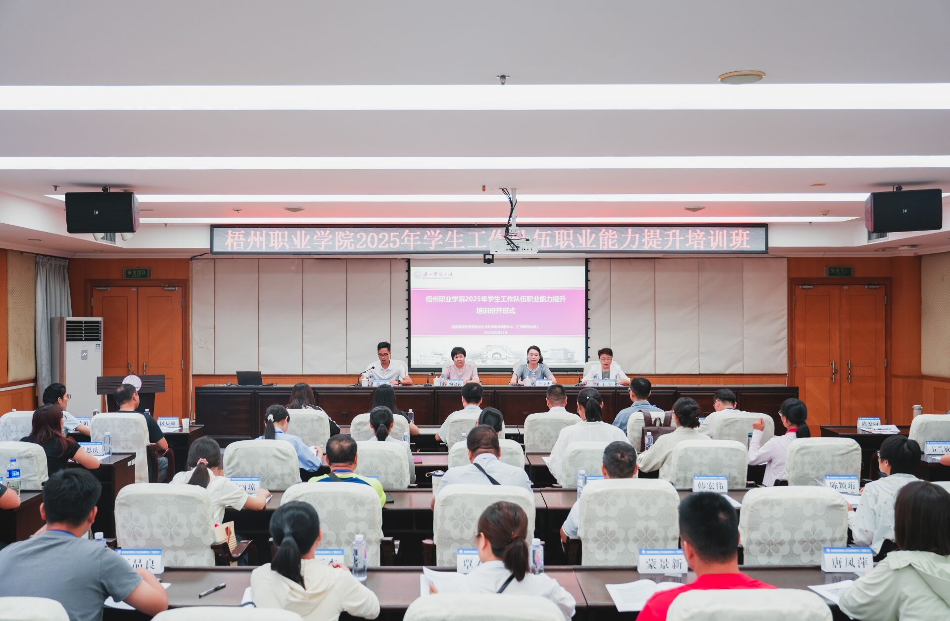 9月21日,beat3652025年学生工作队伍职业能力提升培训班开班仪式在桂林市广西师范大学育才校区图书馆报告厅举行。广西师范大学学生工作部(处)部(处)长、教育部高校思想政治工作队伍培训研修中心(广西师范大学)办公室主任李宇杰,学院党委副书记、纪委书记赖浪涛同志,党委学生工作部(武装部)部长王宇同志,以及各教学单位学生管理人员和辅导员代表参加本次活动,开班仪式由广西师范大学学生工作部(处)副部(处)长蔡兵主持。