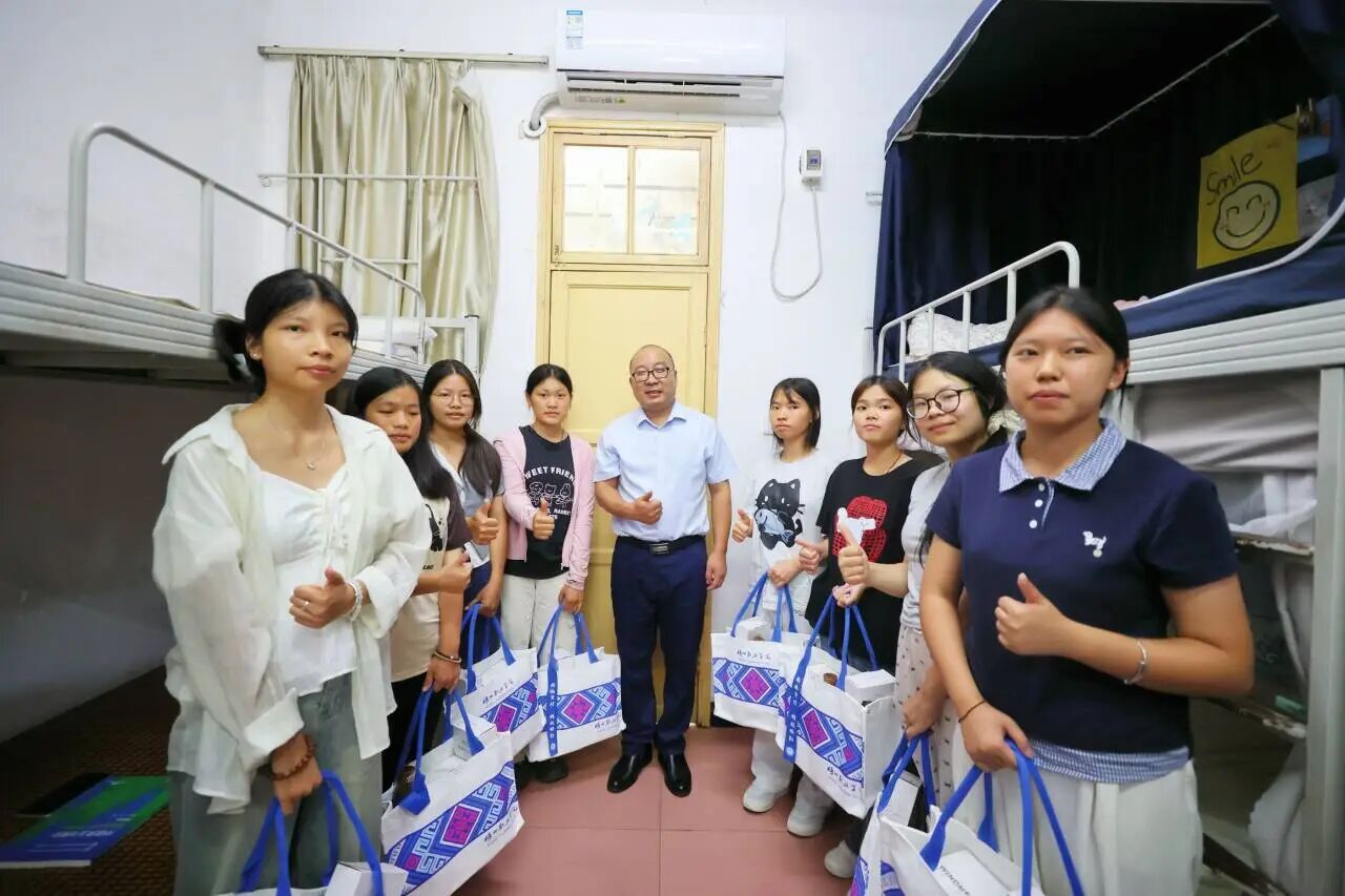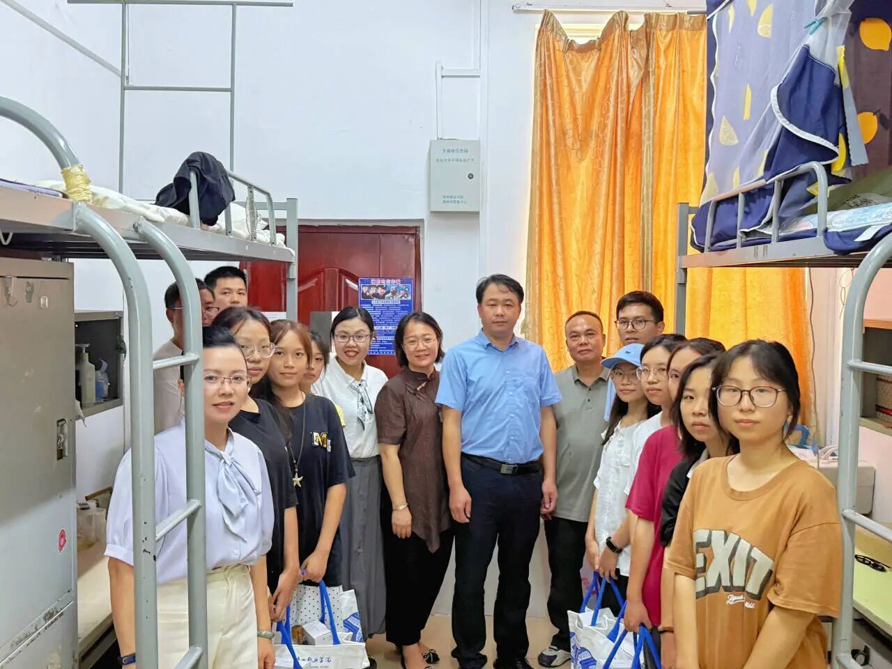 9月11日下午,学院领导时伟、陈森英、梁恩、姚冰、李伟分别走访新生宿舍,慰问2025级新同学。各教学单位领导、新生班主任陪同走访。