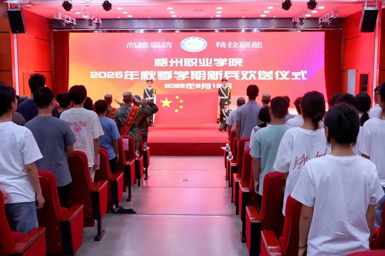 9月12日上午,学院(中心)在图书馆报告厅为2025年秋季应征入伍的本校应届毕业生举行欢送仪式。长洲区人民武装部副部长杨森华同志、学院党委书记时伟同志等领导出席。