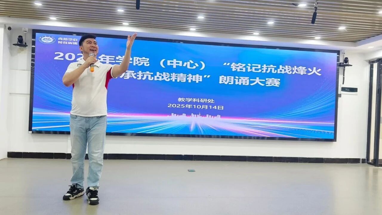 决赛现场首先由教学科研处副处长唐雯雯同志致欢迎词,对三位专家的莅临指导表示热烈欢迎和衷心感谢,她在致辞中强调,本次朗诵大赛是学院(中心)推普周系列活动的重要组成部分,既以竞赛形式为师生搭建了展示普通话水平、提升语言文字应用能力的重要平台。