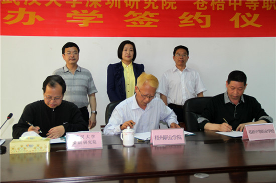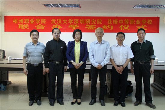 合约各方代表合影(左二为武大陈炜博士,右一为苍梧职校校长李世平)