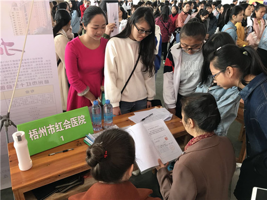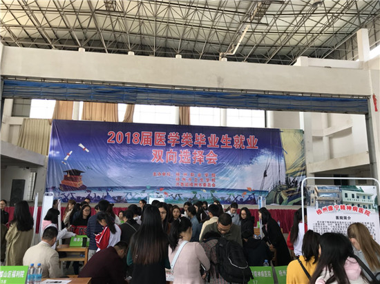 3月21日,学院(中心)举办2018届医学类毕业生就业双选会。风雨操场内,区内外80多家医疗卫生单位设点遴选人才,为1500名毕业生提供1800余个就业岗位,呈现出供不应求的可喜局面。