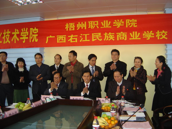 根据自治区教育厅《关于开展广西高职院校对口支援工作的通知》(桂教高教[2008]148号)文件精神,beat365有幸成为广西国际商贸技术学院对口支援院校。为落实好对口支援各项工作,beat365相关领导12月16日上午参加了在广西国际商贸技术学院举行的广西国际商务对口支援签约仪式。