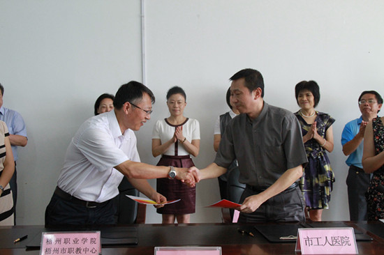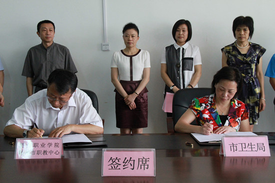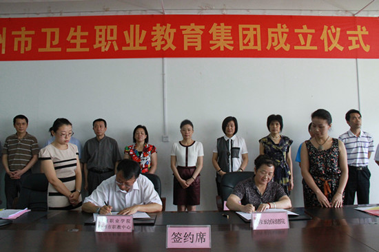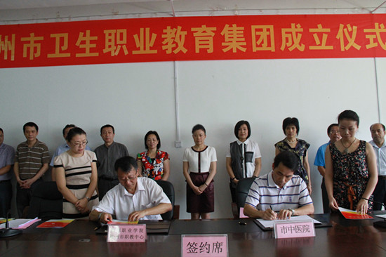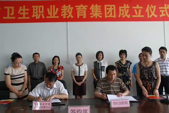 在成立仪式上,集团组成单位的负责人一致通过了集团章程和集团理事会名单,并进行现场签约。学院(中心)负责人分别与市卫生局负责人签订人才培养协议,与市工人医院、市人民医院、市红会医院、市中医院、市妇幼保健院等医院负责人签订校院合作协议。