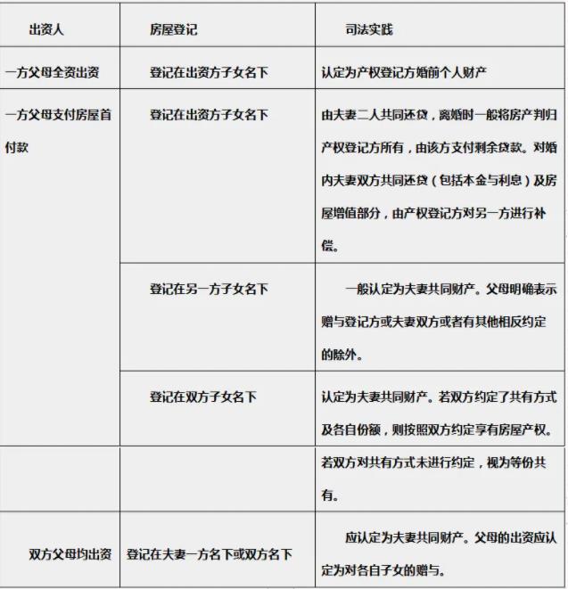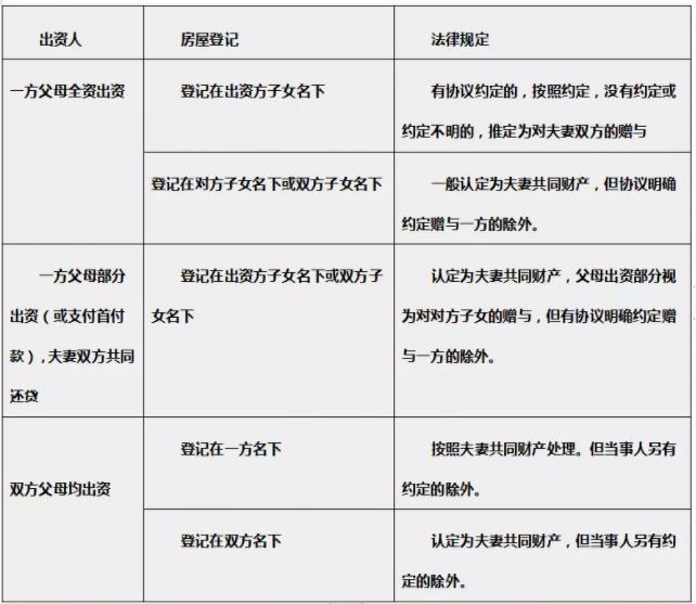 父母出资购房房产归属一览表