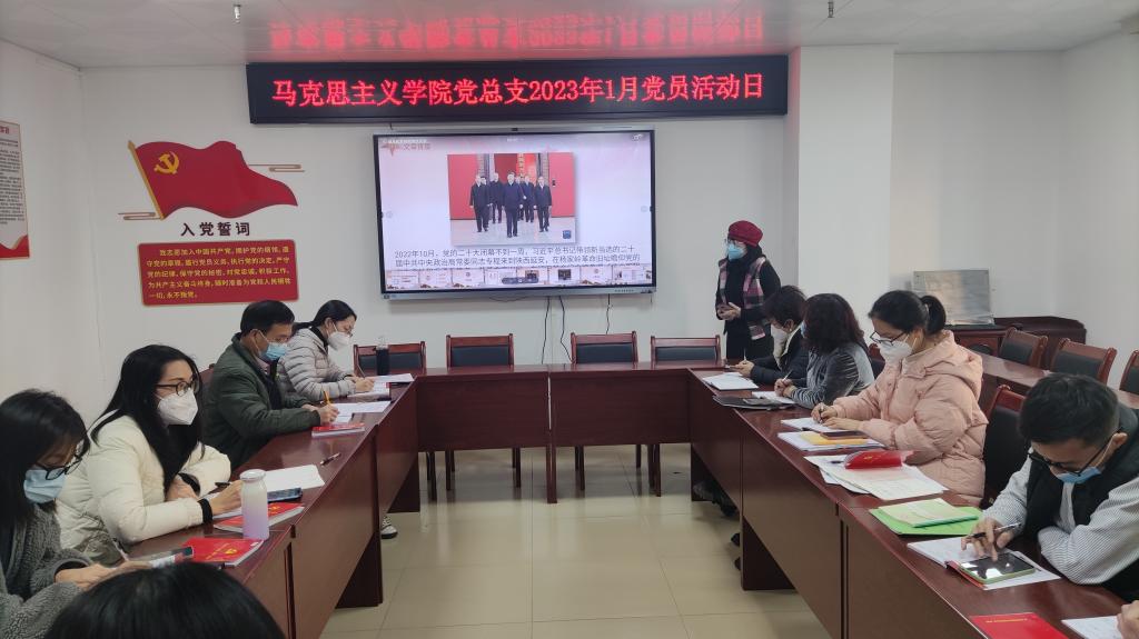 党员干部带头学,集中学习党的二十大精神。学习会上,党总支书记陈俐静对深入学习党的二十大精神提出了要求,全体党员要立足岗位,持续深入学习党的二十大精神,把党的二十大精神融进课堂,推动学习见成效。并把“习近平新时代中国特色社会主义思想概论教研室”作为2023年第一季度“学习榜样”,激励党员向身边榜样学习,坚持把学习好、宣传好、贯彻好党的二十大精神作为当前和今后一个时期的首要政治任务。