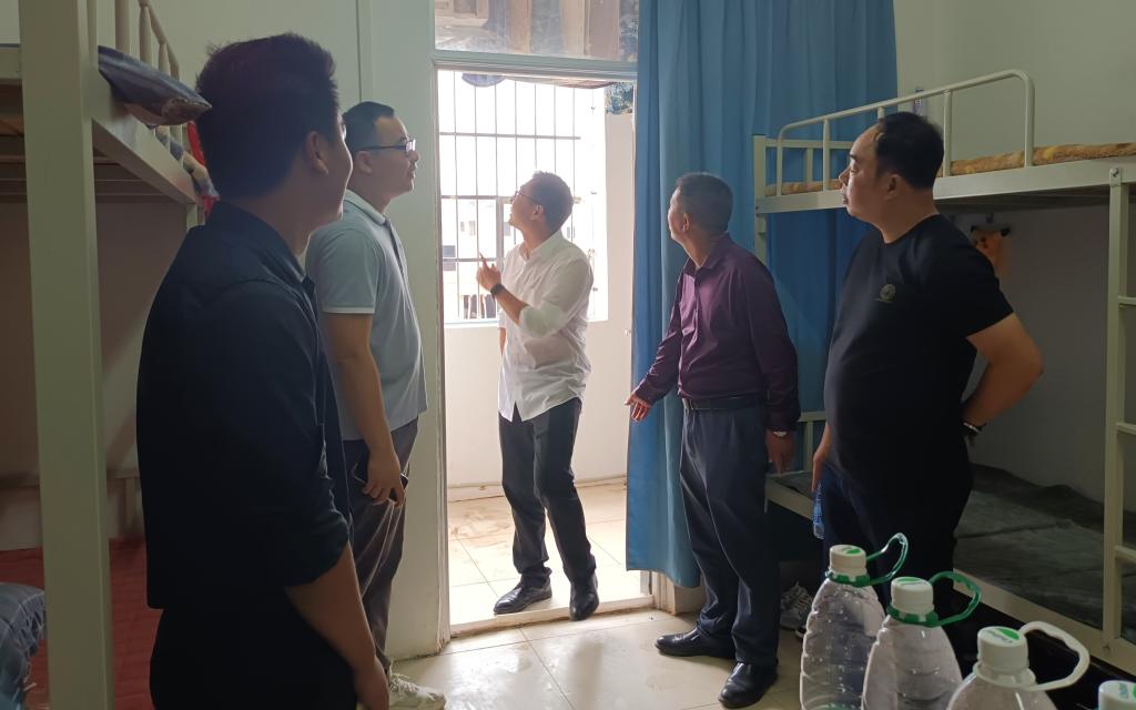 11月9日上午,beat365英国官网网站副校长梁恩带领学院后勤处处长李铿等相关人员一同前往大学生青年公寓6号楼指导工作,新能源汽车终端服务产业学院院长唐成泉陪同。