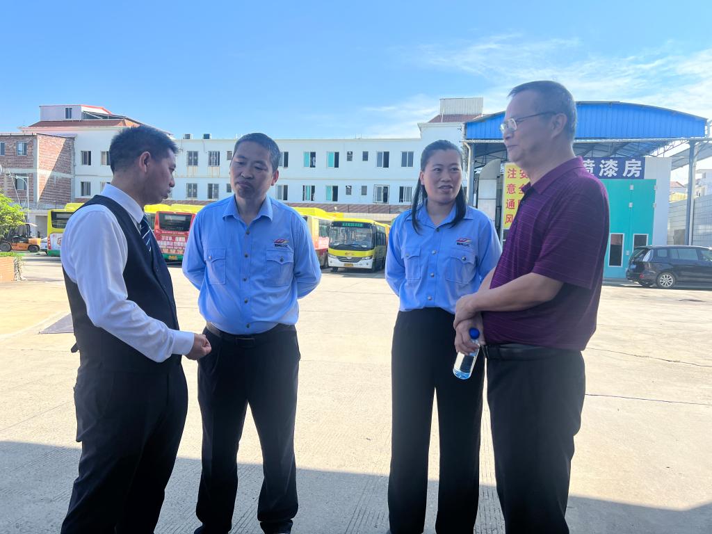机电学院党总支书记叶继新、汽车产业学院院长唐成泉与梧州公交党总支部副书记、副总经理谢占云交流汽车行业产教融合人才培养基地的共建与发展