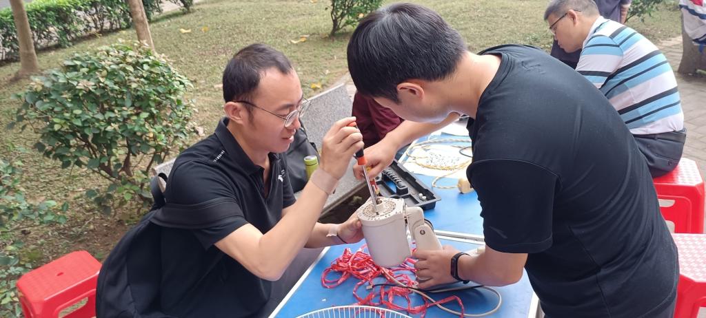 在平浪小区里的小广场处,7名教工党员快速摆好维修摊位。居民们听说有小家电免费维修服务后,纷纷将家里损坏的电风扇、电热水壶、音响等拿到现场让教工党员们进行修理。教工党员们麻利地拆螺丝、检测,边检修边给居民讲解问题出在哪里,该怎么解决。对于无法修好的小家电,教工党员们认真说明原因,并提供了维修建议。