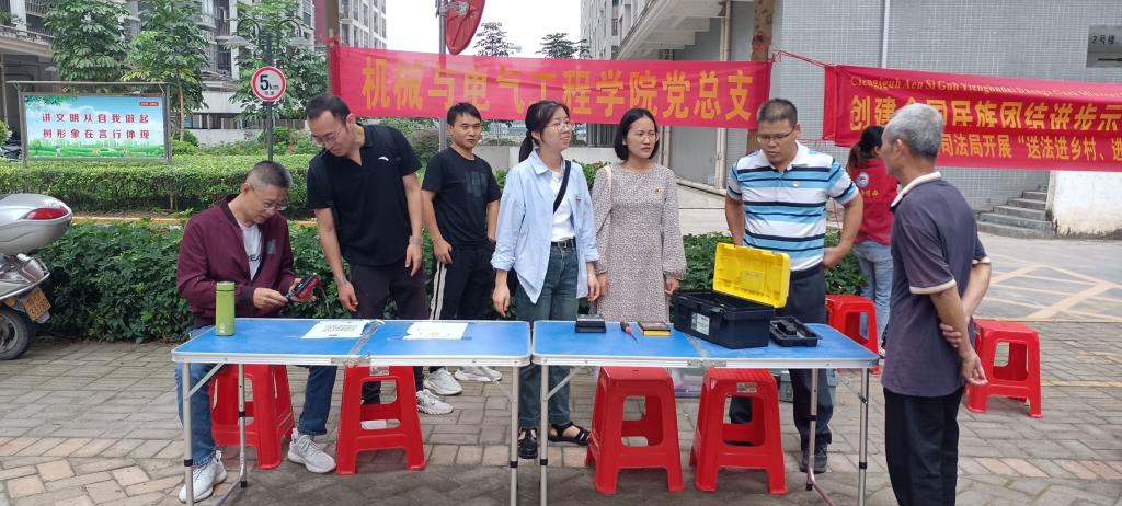 2023年11月9日上午9点,机械与电气工程学院党总支7名党员在平浪小区开展家电免费维修活动。