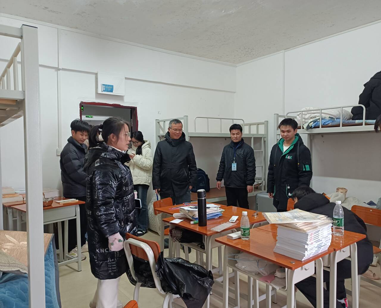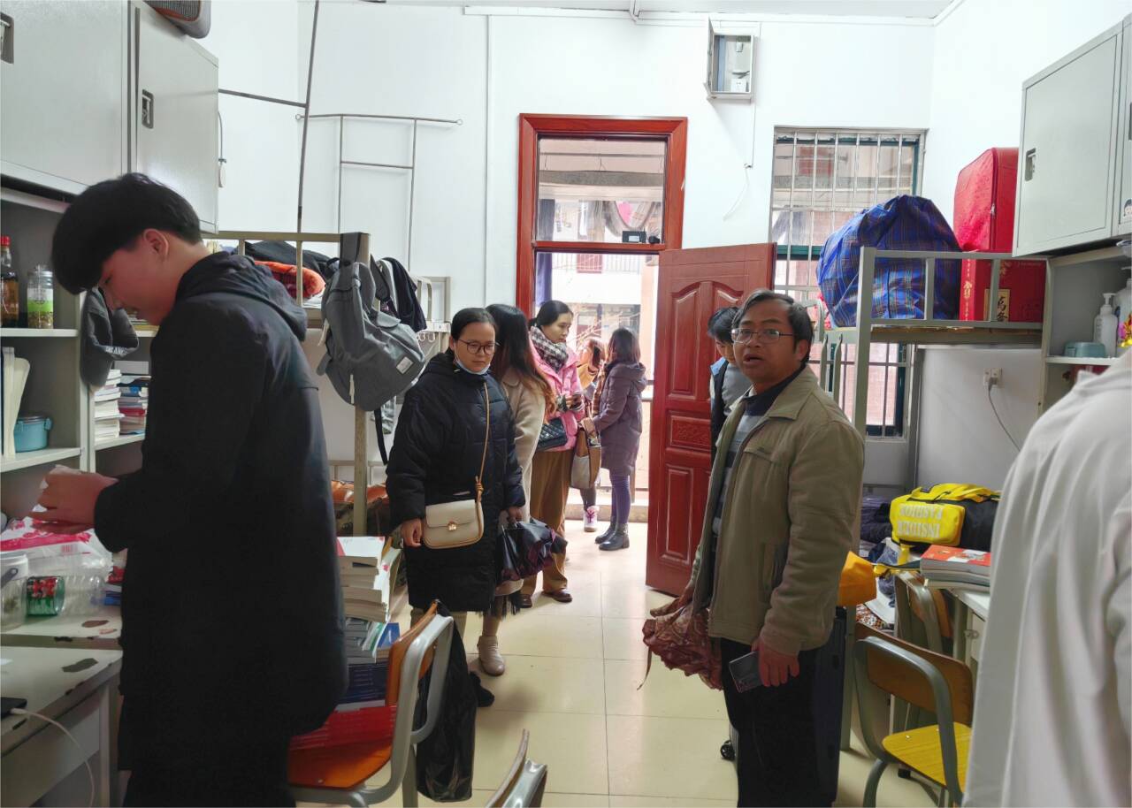 新年新气象,新学期新起点。为加强学生宿舍安全隐患排查,了解学生返校思想动态和学习、生活等情况,2月27日下午,beat365党总支书记叶继新同志、副书记覃伟良同志带领辅导员和班主任等一行人深入走访学生宿舍,给予学生慰问与关心。