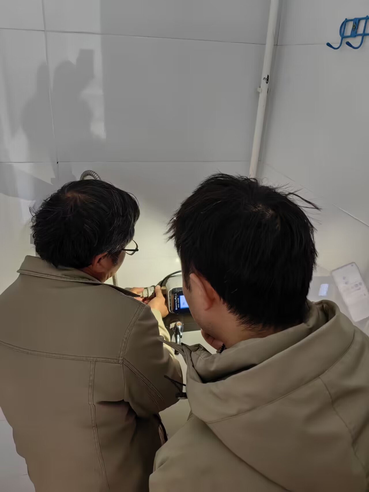 覃伟良副书记帮助学生维修宿舍热水水管