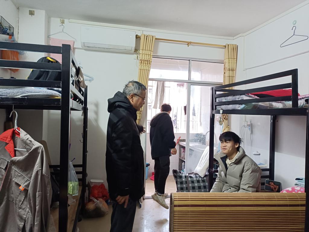 走访中,学院领导认真排查潜在安全隐患,亲切问候返校学生,细心叮嘱同学们天冷注意保暖,在宿舍注意用水、用电安全,提高防火灾、防诈骗意识,并鼓励同学们养成良好的生活习惯,尽快适应校园生活,提前做好未来规划,以良好的精神面貌投入到新学期的学习生活中。