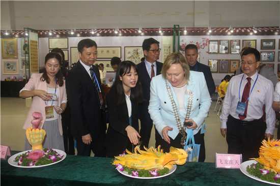 市领导黄振饶陪同外宾参观学院(中心)展厅