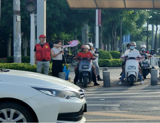 在现场,教师志愿者们或搀扶老弱妇孺安全通过斑马线,或和言细语劝导机动车驾驶人、行人文明驾驶、遵章出行,得到了广大市民群众的赞许,形成了一道靓丽的风景线,为梧州的和谐交通增添了一份靓丽元素。