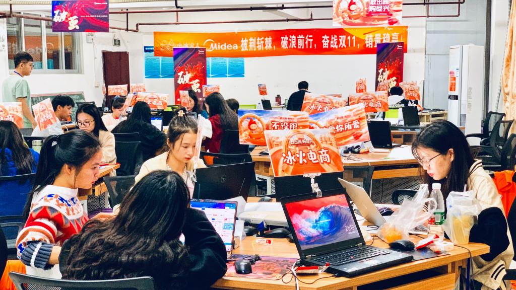 电商专业学生参加与小冰火人公司进行的校内客服实训