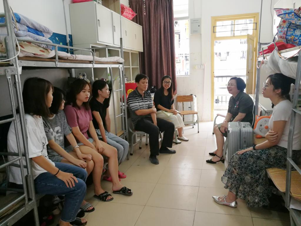图二 赖浪涛到学生宿舍了解学生思想动态、后勤服务情况