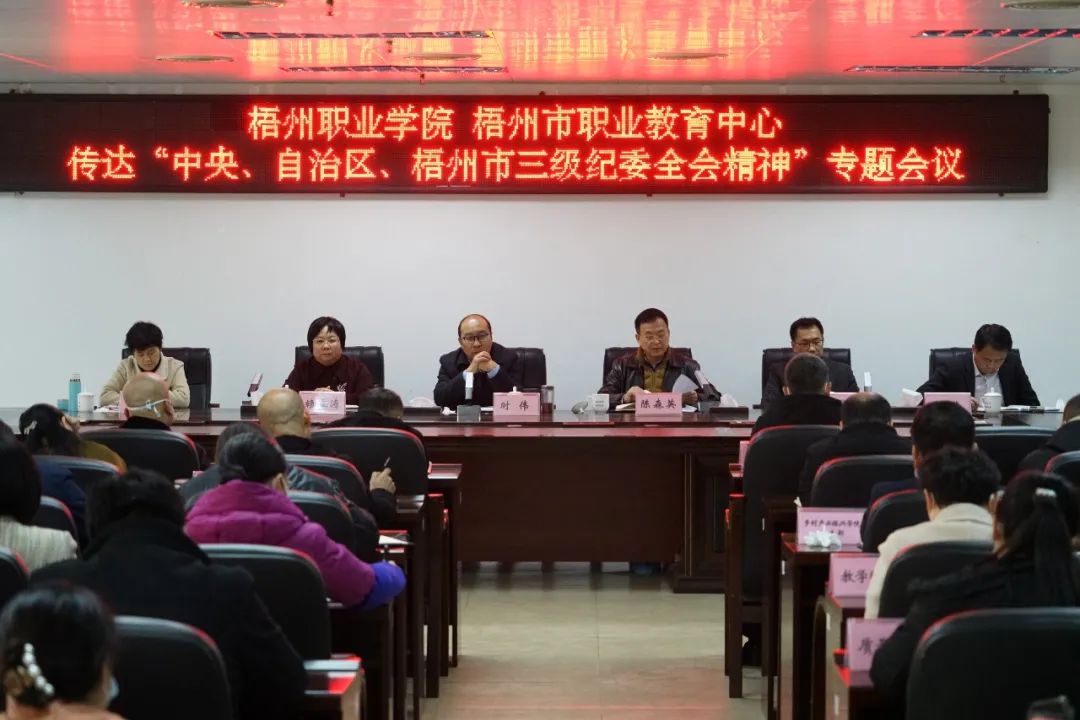 2月17日上午,学校召开传达二十届中央纪委二次全会、自治区纪委十二届三次全会和梧州市纪委十四届三次全会精神专题学习会。学校党委领导班子和全体中层干部参加了会议。会议由学校党委副书记、纪委书记赖浪涛主持。