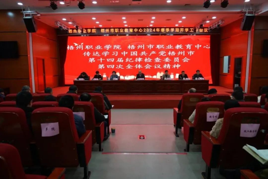 2月26日上午,学校在图书馆报告厅召开会议传达学习梧州市纪委第十四届四次全会精神。学校党委领导班子、全体纪委委员、全体中层干部、各职能部门、各教学单位职工代表参加了会议。