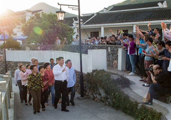这是5月25日,习近平来到舟山市定海干镇新建社区,了解城乡统筹发展和社区文化建设情况。