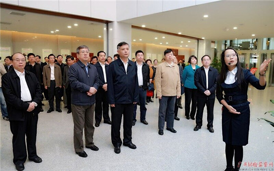 于春生与与会同志参观发生在群众身边的“四风”和腐败问题专项工作成果展