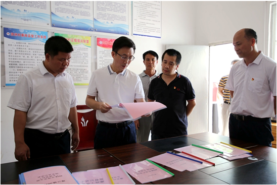 梧州市委常委、市纪委书记、监委主任黄中贤(左二)在藤县濛江镇泗洲村廉洁工作站调研