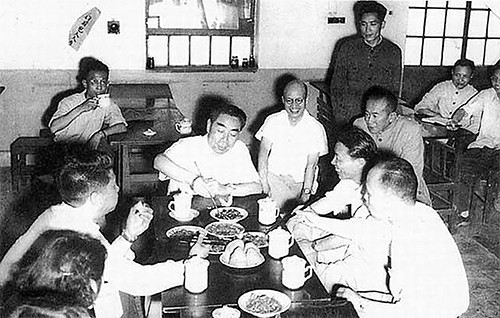 1959年5月,周恩来回母校南开大学视察。参观到下午一点多,周恩来到教职工食堂吃午饭。