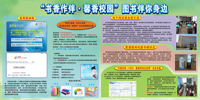 活动月期间,各种活动将精彩不断。除了活动的启动仪式,还将陆续开展优秀图书杂志推荐活动、名著电影赏评、专家讲座、最美梧州照片采集、学院首届“读秀杯”知识技能搜索大赛等系列活动。