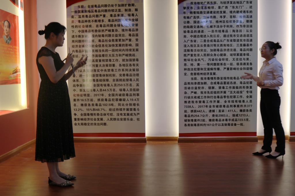 4月23日下午,beat365英国官网网站在梧州市禁毒教育基地举行了以“无毒青春 你我同行”为主题的争当金牌禁毒讲解员活动。beat365英国官网网站、梧州市禁毒办相关领导出席活动。本次活动共有100多人参与,在比赛过程中选手们语言流畅,具有较强的感染力,有些选手还根据自己的需要在讲解过程中借助丰富的肢体语言,使比赛效果逐层升华。评委们沉思的神情、频繁的点头是对选手的最高肯定,也是对本次比赛意义的重要诠释,也正是选手们的精彩讲解,才让大家加深了对毒品的认识,更进一步了解了毒品的种类和危害,从而引导大家彻底远离毒品、拒绝毒品,提高抵制毒品的意识。