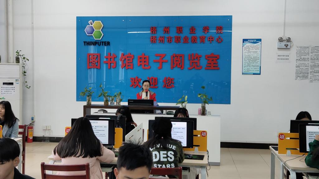 “电子阅览室是建立在计算机和网络技术基础上的现代化多功能阅览室。在这里可以很方便实现新书查询、图书的预约、续借、预借和馆际互借查询等业务。”12月23日,在图书馆电子阅览室,管理员小麦耐心地向同学们介绍电子阅览室的功能和使用方法。这是图书馆开展入馆教育的一个场面。