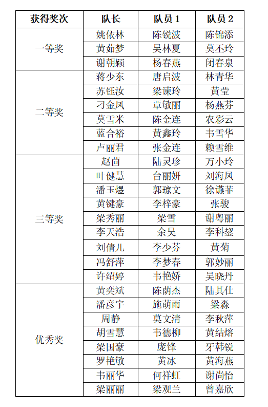 第五届“书香作伴•馨香校园”读书月系列活动“心有灵犀”猜成语比赛在圆满结束,现向全院师生公示获奖名单。猜成语比赛的奖状和奖品统一在读书月活动闭幕式(5月24日星期五)现场发放。