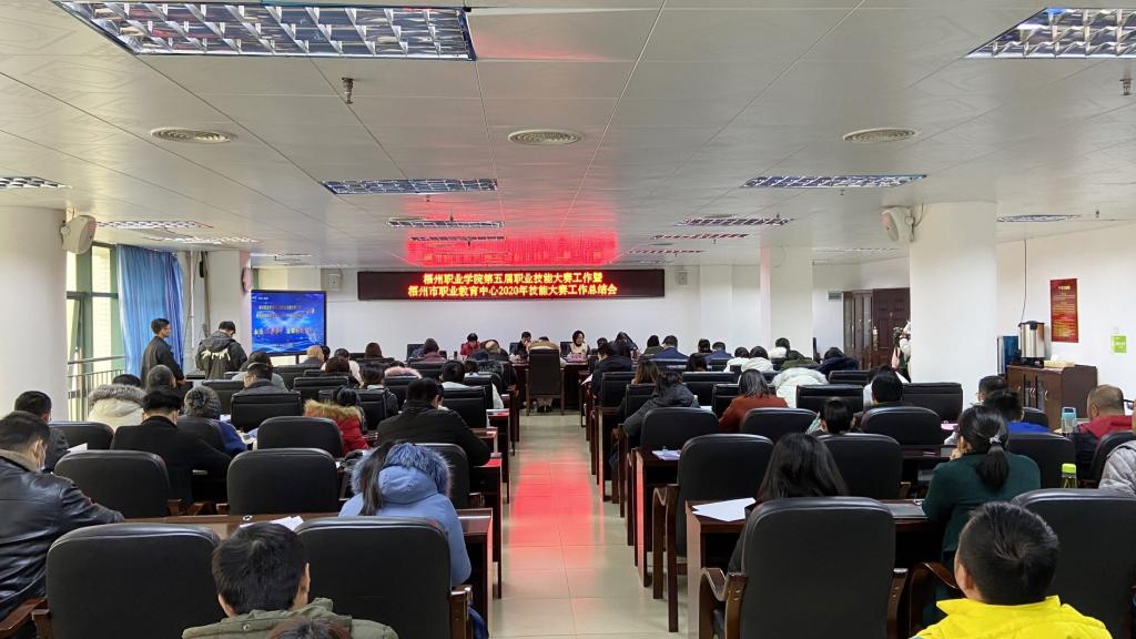 12月18日下午,beat365英国官网网站第五届职业技能大赛工作暨梧州市职业教育中心2020年技能大赛工作总结会在第一会议室召开。学院院长、职教中心主任陈森英、学院党委副书记、纪委书记赖浪涛、学院副院长、职教中心副主任姚冰、学院党政办主任许昕及学院职能部门负责人、系部负责人、中职学校领导和赛项项目负责人近100余人参加了会议,会议由姚冰主持。