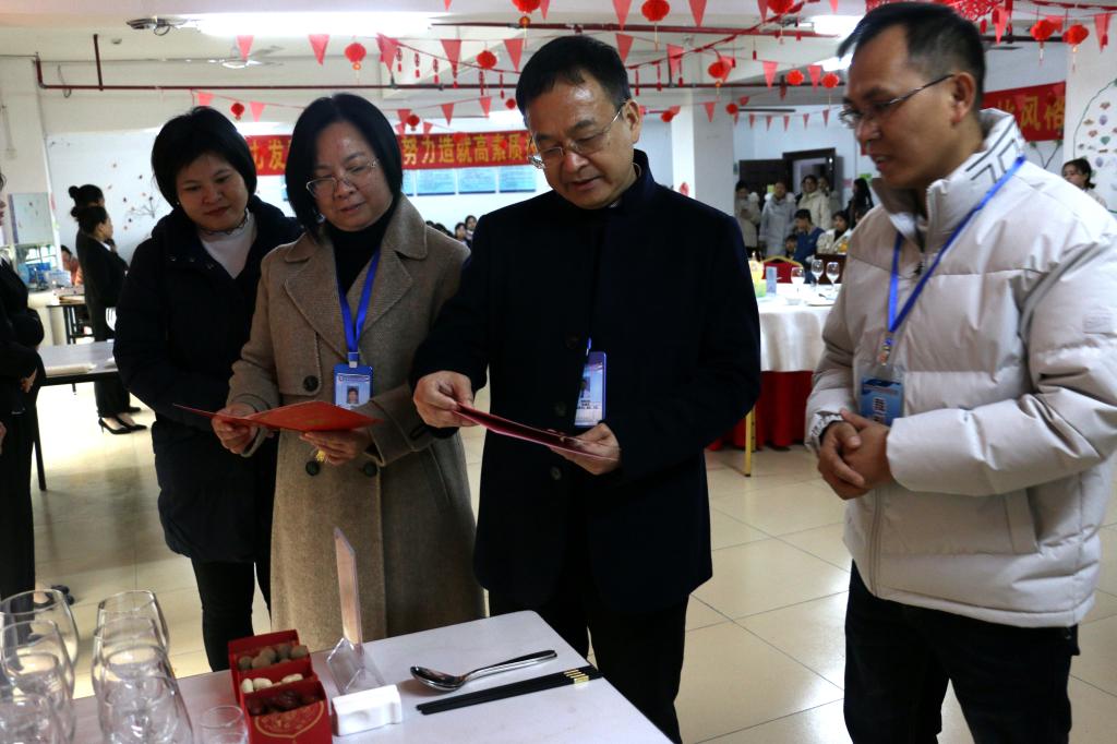 陈森英(左三)、赖浪涛(左二)巡查餐厅服务赛场