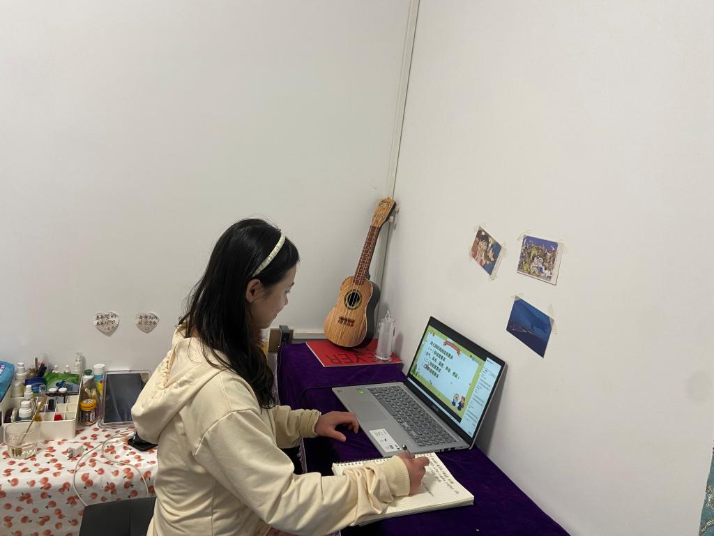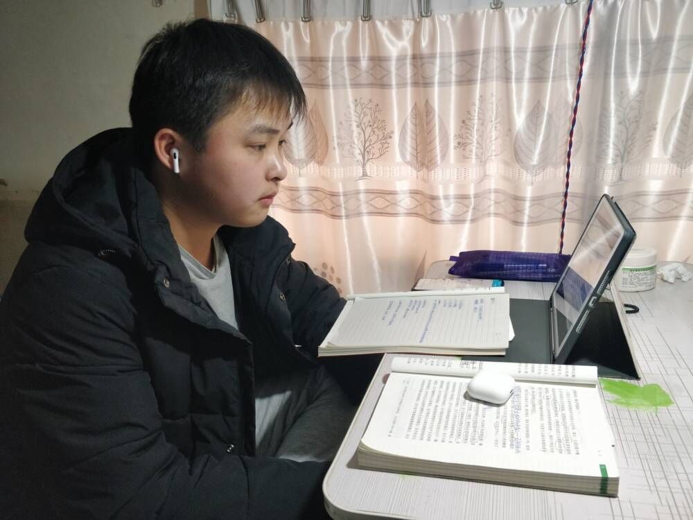学生们利用电脑、手机认真听网课