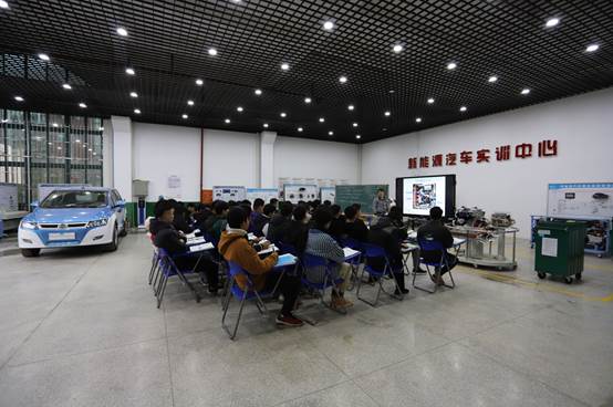 该实训室位于汽车工程技术实训基地1层105室,面积260平方米,2016年9月建成使用。实训室主要设备有比亚迪E6纯电动整车实试验台1套,启辰晨风纯电动整车实试验台1套,丰田卡罗拉混动车身电器实训台1台,混动式整车解剖1台,相关配套台架及工具1批。设备总资产约195.6万元。新能源实训中心主要承担汽车新能源部分的构造、原理学习及总成拆装、检查、检测、故障诊断与维修保养等实训任务。同时向本系各专业学生提供新能源汽车认识和实操所需的教学场地。