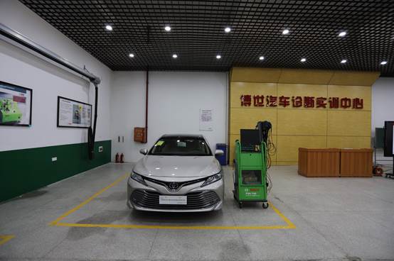 该实训室位于汽车工程技术实训基地1层104室,面积180平方米,2016年9月建成使用。主要设备有博世FSA-740专业诊断设备2套,空调冷媒回收加注设备4套,卡罗拉发动机拆装运行台架9套,卡罗拉发动机实验台架4套。设备总值约150万本实训室主要面向汽车检测与维修技术、汽车营销与服务专业学生使用,承担了《汽车综合故障诊断与排除》、《汽车发动机构造与维修》、《汽车发动机电控技术》等课程的教学任务,目前开设的实训项目主要有:发动机拆装及运行、温度传感器的检测、曲轴位置传感器的检测、爆震传感器的检测、节气门位置传感器的检测、点火线路的检测、燃油供给系统的检测、空气流量计的检测、进气压力传感器的检测、氧传感器的检测、发动机故障诊断排除等实训项目,为学生提供理论知识验证的操作平台。同时也承担梧州市人社局汽车维修工等级证、汽车驾驶员等级证的鉴定和培训任务。