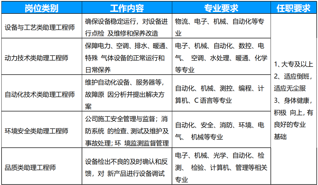 3、工程序列:公司工艺设备技术、研发、动力、技安、IT 等部门助理工程师、专员岗位空缺,将从内部员工中选拔竟聘
